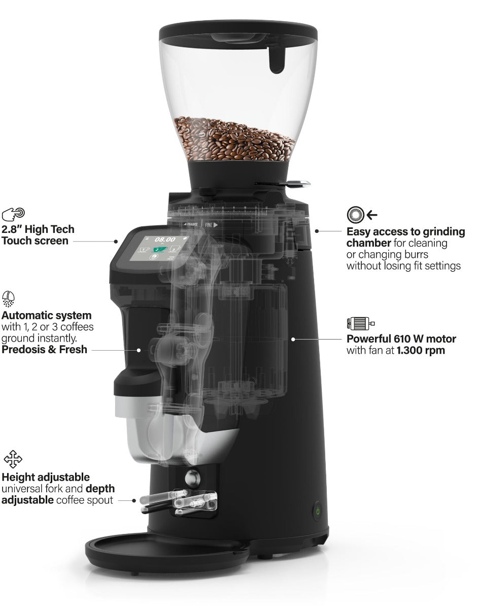 Quick and easy access to the burr chamber without losing your grind settings. This makes burrs easy to change and clean.