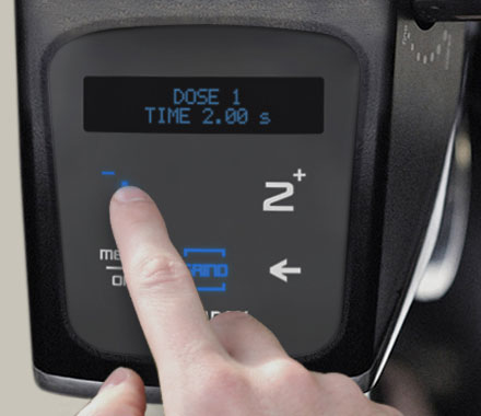 A display screen allows you to program buttons to select the desired amount of coffee.