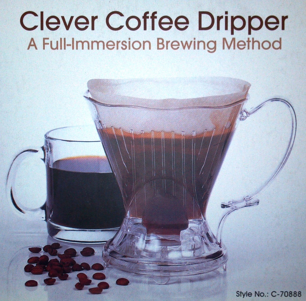 كليفر للتقطير الذكي إختراع بسيط يسمح لك بالتحكم في توقيت تحضير القهوة بطريقة التنقيع بمجرد وضعه فوق الكوب ليبدأ الصب أو وضعه فوق الكوب من البداية ليقوم بعمليّة الترشيح