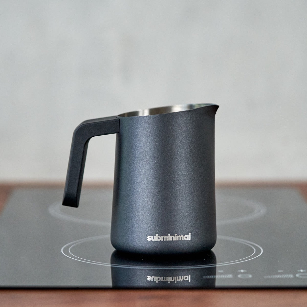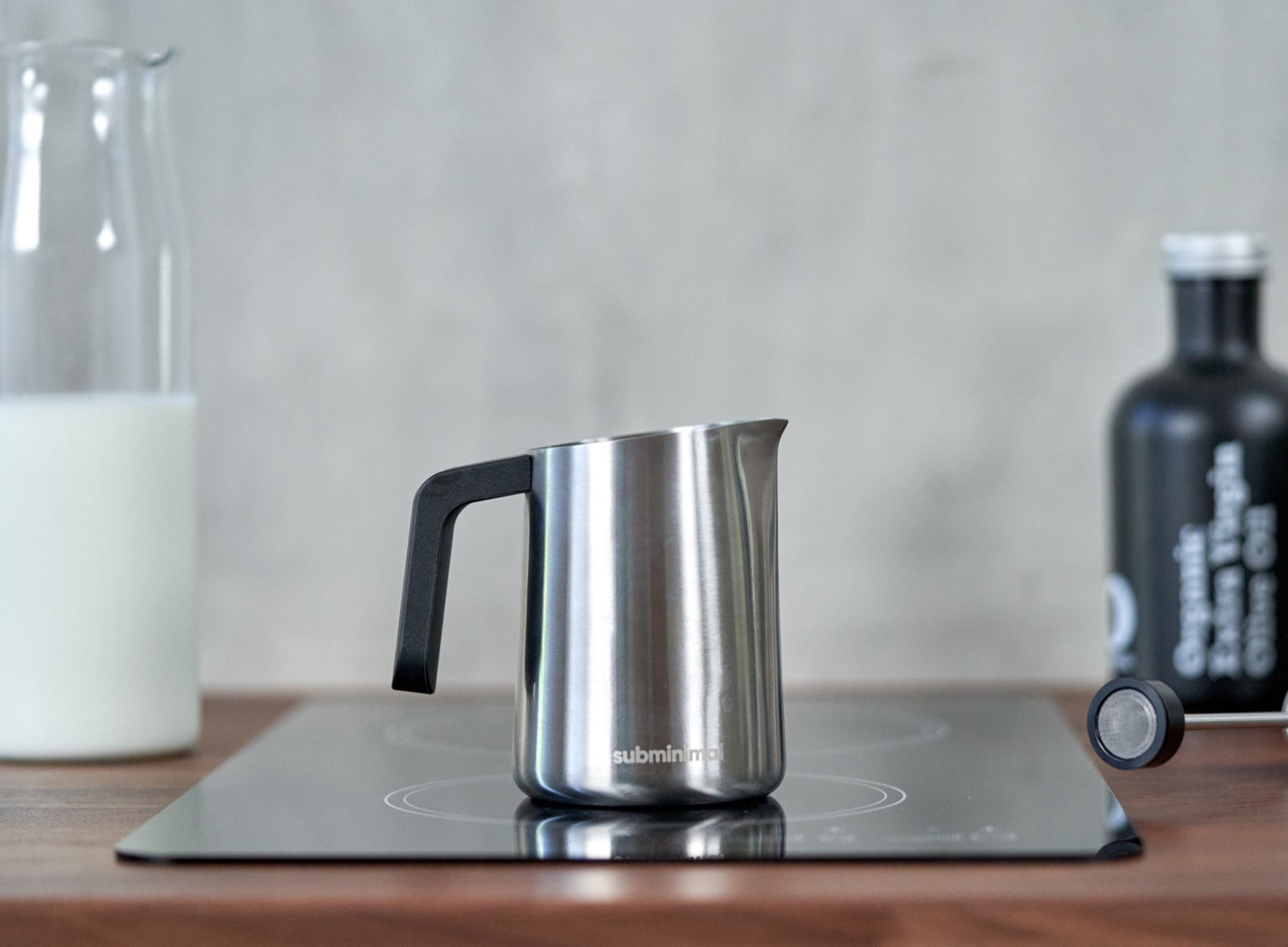 من سبمينيمال إناء تبخير وتحضير رغوة الرسم، يمكن تستعماله مع جهاز نانو فومر لتحمية الحليب على اي مصدر حرارة ثم ادخال جهاز نانو فومر.